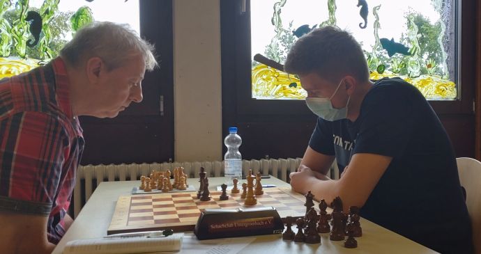 Nach einem Jahr und vier Monaten, einer sehr langen schachlosen Zeit und einem turbulenten BSV-Kongress, konnte die Saison 2019/20/21 nun endlich fortgesetzt werden. In der Kreisklasse A empfing Spitzenreiter Untergrombach den vermeintlichen Underdog ubu Karlsruhe II. Die Spielmoral war angesichts der Rahmenbedingungen (Pandemie und enstprechendes Hygienekonzept) auf beiden Seiten gut und nur das achte Brett wurde freigelassen. Untergrombach wollte mit einem Sieg den Meistertitel in der A-Klasse in trockene Tücher packen. Aber einige Untergrombacher SpielerInnen mussten erkennen, dass es ein Unterschied ist, ob man vor dem Bildschirm Online-Schach spielt oder am Brett real mit langer Bedenkzeit. Bereits früh geriet der SCU durch Niederlagen von Emir Mesic und Marlis Jahraus in Rückstand. Marlis Jahraus kam mit der Bird-Eröffnung des Gegners zunächst gut zurecht, im Mittelspiel verlor sie angesichts relativ unbekannter Stellungstypen die Übersicht und musste etwas Material geben. nach gutem gegnerischen Spiel bekam sie auch keine Chance mehr, sich in die Partie zurückzukämpfen. Einen ganz sicheren und schön herausgespielten Sieg sicherte Jugendspieler Andre Hayen zum 1:2.