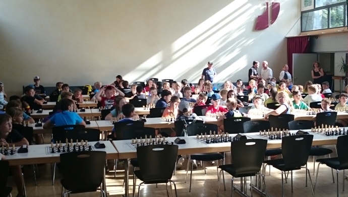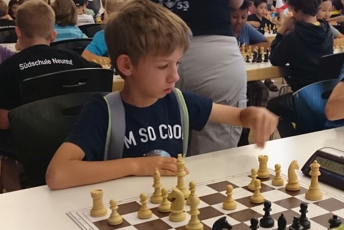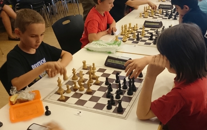 Am 4.7. fand in Karlsruhe der "Hans-Thoma-Cup" statt, die Meisterschaft der Grundschüler aus Karlsruhes Schulen. Vom SC Untergrombach waren fünf Spieler dabei: Luca Toth holte mit 6,5 aus 7 den zweiten Platz, mit schlechterer Feinwertung hinter Turniersieger Tobias Kiefhaber (KSF). Aaron Scherer kam auf 4,5 Punkte aus 7 Runden, Mattis Zimmermann überraschte mit 4 aus 7 mit einem ebenfalls sehr guten Ergebnis. Für Maximilian Kindler (2 Punkte) und Louis Weber (1,5 Punkte) war es das erste Schachturnier und sie konnten viel Erfahrung sammeln. Bis auf Aaron können alle im kommenden Jahr einen neuen Anlauf nehmen. Das Endergebnis hat der Veranstalter zur Stunde leider noch nicht veröffentlicht.