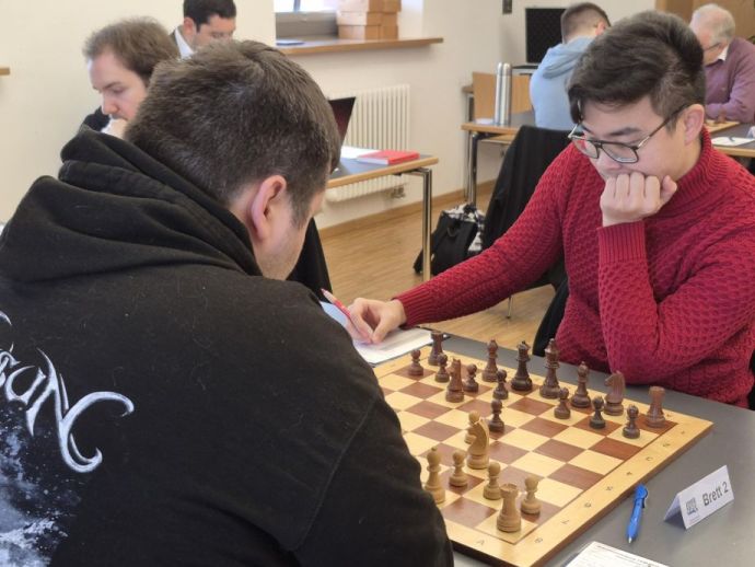 Xiang-Tobias Peng neutralisierte erfolgreich einen Internationalen Meister mit Schwarz.