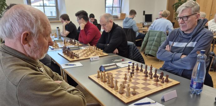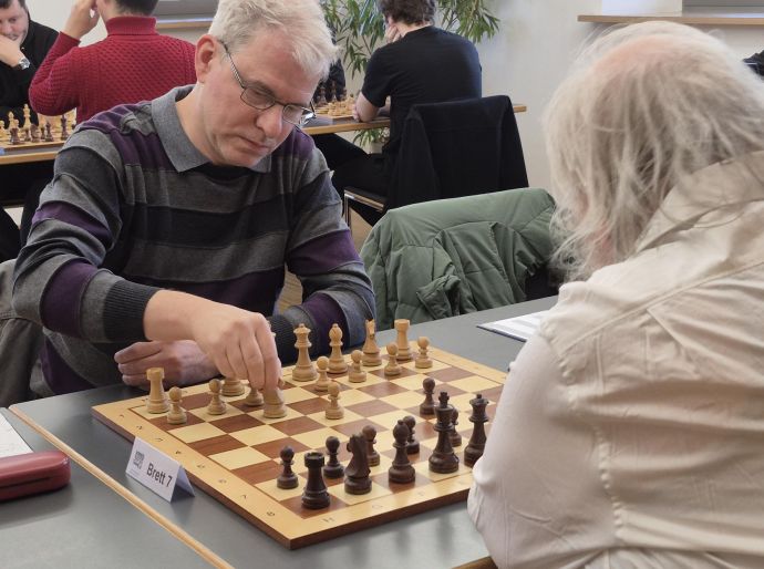 Mannschaftsführer IM Heinz Fuchs war mit Weiß am dritten Brett nicht unglücklich über die erreichte Punkteteilung.