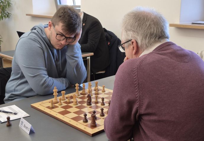 Die erste Entscheidung gab es dann am achten Brett und es war ein starker Jugendspieler aus der Meisterschmiede des SC Untergrombach, der seinen Verein in Führung brachte: Levin Uyar gewann sein Spiel mit Schwarz gegen Daniil Gusev, der es in den DC-Kader des Deutschen Schachbunds geschafft hat. Uyar wählte mit Schwarz die Offene Verteidigung in der Spanischen Partie. Der Hockenheimer Youngster verrechnete sich im vierzehnten Zug in taktischer Stellung und musste in der Folge eine ganze Figur geben. Uyar ließ den nachfolgenden weißen Angriff ins Leere laufen, forcierte den Abtausch der Damen und das Spiel war zu Ende.