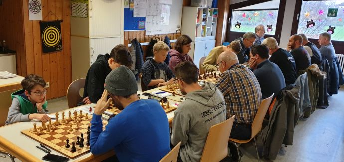 Die dritte Mannschaft wurde ihrer Favoritenrolle gerecht und hat mit diesem Sieg ihre Position an der Tabellenspitze verteidigt. Auch wenn die gesamte Familie Toth wegen Ausfällen in den vorderen Mannschaften in der Bereichsliga aushelfen musste, so wurden sie durch die Aufrücker gut kompensiert. Schön dass hier besonders unsere Jugend mit starken Leistungen wieder glänzen konnte. Auch wenn es für Levin, unser Jüngster, etwas unglücklich lief, so hat er doch Kampfgeist gezeigt. Am Ende musste er aber doch seinem Gegner die Hand reichen. Hier fehlt möglicherweise einfach nur noch die Erfahrung, aber da braucht man sicher nicht mehr lange warten. Zählbares kam aber erneut von Andre Hayen, der jetzt schon seinen 3 Punkt in Folge holen konnte. Punkten konnte auch Simon Richter, ein weiterer Jugendspieler der sich ebenfalls anschickt die höheren Weihen zu bekommen. Britta Mangei und Andreas Burger steuerten mit ihren Remis einen weiteren Punkt bei und gingen lieber auf Nummer sicher, bevor sie ihre Partien überziehen. Insbesondere hätte mich der weitere Verlauf der Partie von Andreas interessiert, der sich mit dem angebotenen Remis zufrieden gab und einen eigenen scharfen Angriff mit offenem Visier lieber doch nicht wagte. Im Nachgang muss man aber sagen, dass beide richtig gehandelt haben. Nach dem Sieg von mir, eine geschickte Abtauschvariante diverser Leichtfiguren brachte mich auf die Siegerstraße, stand es 4:2 für uns und die verbleibenden 2 Partien standen nicht unbedingt schlecht. Nachdem jedoch wegen eines Missverständnisses in den Reihen der Hambrücker ein Remisangebot an Michael Hayen an Brett 4 kam, nützte dieser sein Recht zur Annahme des Angebotes und steuerte so den noch notwendigen halben Punkt zum Mannschaftssieg bei. Kay Hayen remisierte im Anschluss noch am Spitzenbrett und ist mit 2,5 von 3 möglichen Punkten ebenfalls weiterhin ungeschlagen. Die nächste Runde ist erst im Januar des neuen Jahres. Da heißt es gegen die Spieler aus Sulzfeld nichts anbrennen zu lassen. Und aufgepasst, Sulzfeld hat nur einen halben Brettpunkt weniger als der Tabellenzweiter und ist Mitfavorit um den Klassensieg.