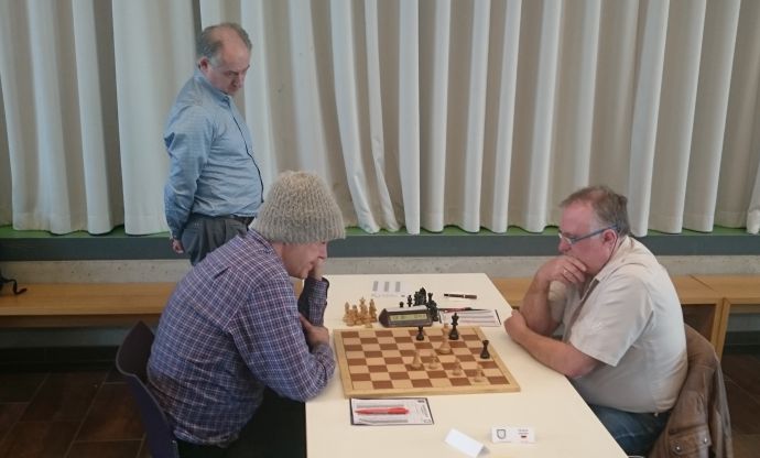 Als nach mehreren Stunden, die ich damit verbrachte, meine Stellung irgendwie merklich zu verbessern, sich mir nach wie vor kein Gewinnweg auftat, endete auch mein Duell am ersten Brett mit einem Unentschieden. Dabei gilt es noch zu erwähnen, dass mein Gegenspieler zu keiner Zeit den Anschein erweckt hatte, dass er dieses Spiel verlieren würde und sehr souverän und solide seine leicht passivere Stellung verteidigt hat. Das Endergebnis von 3:5 ist vollkommen verdient, nichtsdestotrotz ist es schön zu sehen, dass die zweite Mannschaft wieder aus einem festen Stamm besteht, auf den man sich verlassen kann.