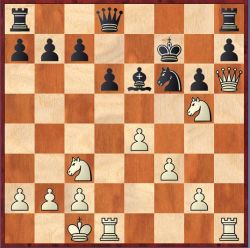 In der A-Klasse hatte der SCU III ein Auswärtsspiel beim Aufsteiger Odenheim zu bestreiten, Spielbeginn war 9 Uhr morgens. Odenheim ist ein kleiner Verein mit gerade noch elf Mitgliedern, gegen Untergrombach saßen jedenfalls acht Mann an den Brettern. Der SCU musste Marlis Jahraus erneut an die zweite Mannschaft abgeben, dafür wieder mit Klubchef Heiko Schleicher am fünften Brett. Und alle legten hochmotiviert los, einer jedoch hatte es besonders eilig: Alexander Wachter an Brett 3 kam zu einem starken Königsangriff mit gegenläufigen Rochaden. Nach nicht einmal zwei Stunden Spielzeit kam die folgende Stellung aufs Brett: