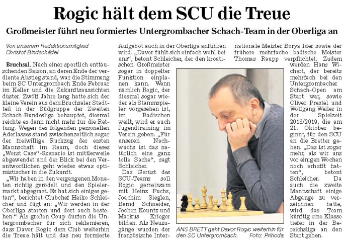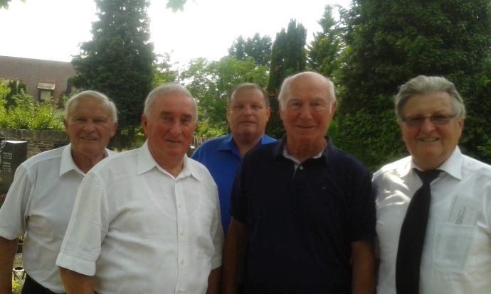 Mit einer bewegenden Trauerfeier haben die Familie und zahlreiche Schachfreunde auf dem Friedhof in Eggenstein Abschied vom verstorbenen ehemaligen Untergrombacher (und Blankenlocher) Spieler Bernhard Ratzel genommen. Der leitende Trauerredner chronologisierte Bernhards Leben und fand viele nachdenkliche und bemerkenswerte Worte über das Leben, den Tod und die Vergänglichkeit und Fragilität des Lebens. Eine extra aus München angereiste frühere Kollegin bei der von der deutschen Schauspielerlegende Karlheinz Böhm ins Leben gerufenen Organisation " Menschen für Menschen ", für die Bernhard über ein Jahrzehnt vor Ort in Äthiopien gearbeitet hatte, ehrte ihn für sein jahrelanges Engagement, das weit über einen regulären Arbeitsplatz hinaus ging, verlas auch einen Brief eines ehemaligen afrikanischen Kollegen und beendete ihre Worte mit dem traditionellen äthiopischen Abschiedsgruß. Vorsitzender Heiko Schleicher sprach auf besonderen Wunsch der Witwe Judith Ratzel einen Nachruf, der auf Bernhards großen Mitanteil am Untergrombacher Schachwunder in der zweiten Hälfte der 70er Jahre hinwies, auf seine Spuren die er im Verein hinterlassen habe und auch über seine Hingabe an das Schachspiel insgesamt, hier vor allem für die Schachkunst seines schachlichen Vorbildes, dem früheren Weltmeister Jose Raul Capablanca. Besonders ergreifend war auch die Tatsache, dass mit Norbert Klotz, Günther Seyffer, Willi Wachter, Günter Göhring und Kurt Speck der Großteil der noch lebenden Untergrombacher Vereinsveteranen dieser großen Zeit Bernhard die letzte Ehre erwiesen, drei davon bereits über 80 Jahre alt (unser Bild zeigt von links W. Wachter, K. Speck, Vorsitzender Heiko Schleicher, G. Seyffer und N. Klotz [leider fehlt gerade Günter Göhring]). Weitere Schachfreunde die sich eingefunden hatten waren Stefan Doll, Wolfgang Henn (auch er viele Jahre beim SCU aktiv), Hajo Vatter, Dieter Rothacher und Slobodan Drakulic. Besonders erwähnt werden muss auch die Anwesenheit von Christian Maier, der die Tortur einer dreistündigen Autofahrt auf der freitagnachmittäglichen A 5 auf sich nahm, um sich von seinem Schachfreund persönlich zu verabschieden. Die Familie Ratzel hatte im Anschluss noch zu einem Beisammensein im " Andreasbräu " eingeladen, im Verlaufe dessen noch viele Anekdoten aus den alten Zeiten die Runde machten.