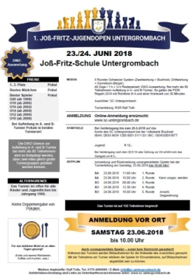 Viel wichtiger jedoch war das Abschneiden der Jugendspieler (weswegen man angereist war) und diese zeigten, warum sie im Untergrombacher A-Kader der Jugendlichen stehen: Pascal Nied kam auf 2,5 Punkte, hatte jedoch starke Gegner und legte daher auf DWZ 1371 (+12) zu. Luca Toth konnte den sensationellen Sprung von den Badischen JEM bestätigen und hielt seine Leistung - 2,5 Punkte und neue DWZ 1283 (+1). Das beste Ergebnis holte Marc Toth der nach fünf Runden schon ein verpatztes Turnier vor sich sah, jedoch mit einem sehr starken Sieg in der finalen Runde über DWZ 1585 eine insgesamt mehr befriedigende Leistung herausholte: 3 Punkte und neue DWZ 1311 (+62).