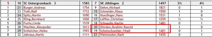 SC Untergrombach III bleibt somit Spitzenreiter der A-Klasse und verdankt dies Spielern wie Alexander Wachter, der mit 3½ aus 4 neben dem Ettlinger Klaus Müller derzeit der Top-Spieler der Liga ist.