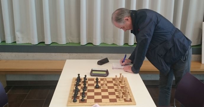 IM Heinz Fuchs vermerkt das 1:1 - es war sein Remis am zweiten Brett gegen IM Milosevic.