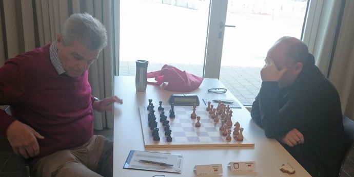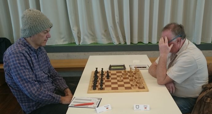 FM Hans Wiechert mit Weiß hatte heute einen entspannten Arbeitstag - sein Gegner griff früh fehl und Wiechert heimste den Punkt ein.
