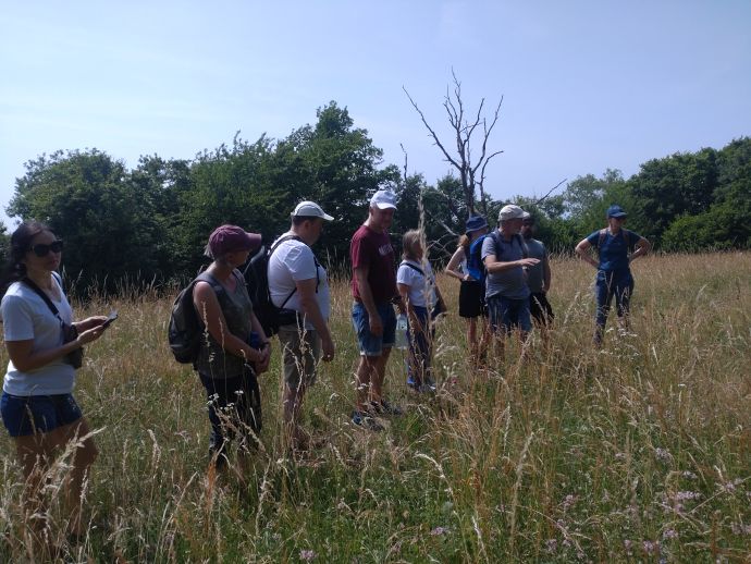 Im Rahmen der letzten Vorstandssitzung wurde überlegt, welche Angebote geeignet wären, das Vereinsleben des SC Untergrombach weiterzuentwickeln. Eine der Ideen, die sofort Anklang fanden, war eine Orchideenwanderung am Untergrombacher Hausberg, dem Michaelsberg. Auf den dortigen Trockenwiesen gedeihen geheimnisvolle und seltene Pflanzen, darunter wunderschöne Orchideen. Unter der fachkundigen Leitung von Dr. Max Seyfried wurden gleich zwei Termine angeboten, die beide schnell ausgebucht waren. Die TeilnehmerInnen der ersten Wanderung lernten Erstaunliches über die Botanik am Michaelsberg, nicht nur über die seltenen Orchideen, von denen manche ihre Blüten als weibliches Insekt verkleiden, um Bestäuber anzulocken. Auch über Heilkräuter und essbare Wurzeln gab es etwas zu erfahren und zu lernen. Und sogar über so triviale Pflänzchen wie das Gänseblümchen wusste Dr. Seyfried Interessantes zu berichten, nämlich warum sich die Blüten dieser Pflanzen im Frühjahr manchmal rötlich einfärben. Am Ende einer äußerst kurzweiligen und informativen Wanderung waren alle TeilnehmerInnen restlos zufrieden. Da es eine Veranstaltung des SCU war, musste natürlich auch der Schachbrettfalter vorbeischauen und ließ sich auf einer der Teilnehmerinnen nieder - ein gutes Omen für das nächste Turnier?