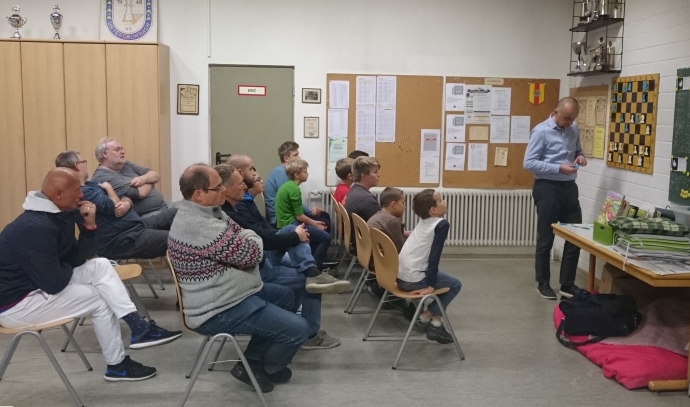 In der Serie "Training mit dem Meister" gab es am Samstag, 10.11.18 eine zweite "Masterclass" mit GM Davor Rogić. Diesmal war auf Vorschlag aus der Teilnehmerseite das Thema "Das Läuferopfer auf h7/h2". Großmeister Rogić erläuterte die notwendigen Strukturen, aus welchen Eröffnungen diese entstehen können und welche Verteidigungswege der Angreifer berechnen muss. Er zeigte einige Sonderfälle, die man ebenfalls kennen sollte. Die Theorie war stets mit praktischen Beispielen unterfüttert. Anschließend hatten alle Teilnehmer die Gelegenheit, gegen den Großmeister zu blitzen. Rogić ließ keinen der Anwesenden unberücksichtigt. Mit diesmal 15 Teilnehmern war es auch gleichzeitig Teilnehmerrekord in der Meister-Trainingsserie.