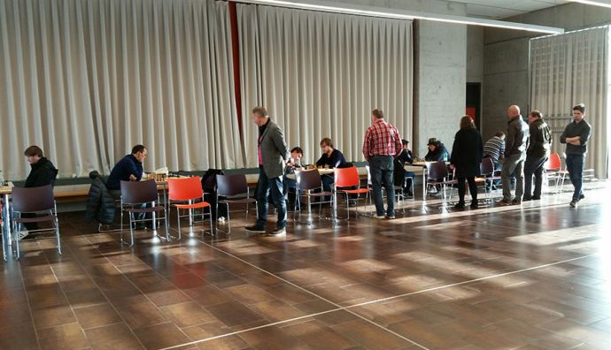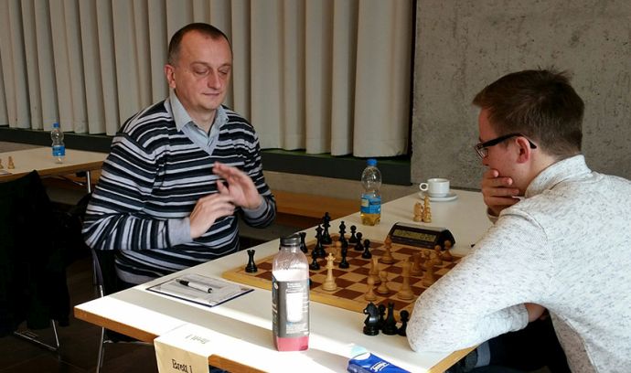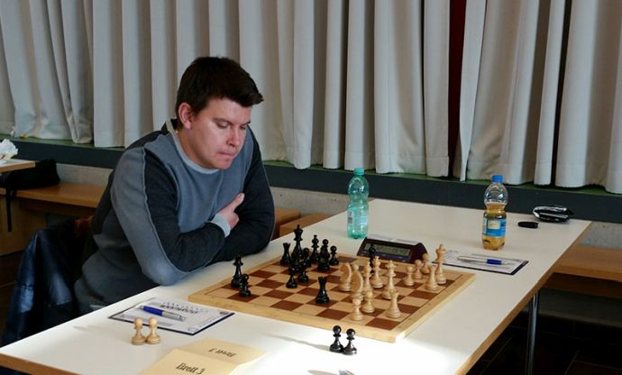 IM Oleg Spirin bislang noch sieglos. Remis gegen Schwarzenbach mit Schwarz.