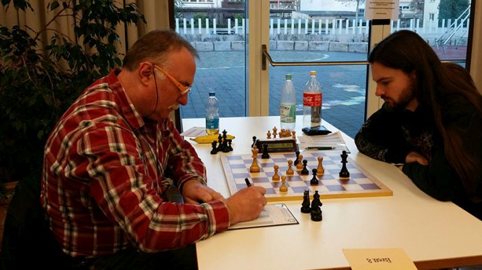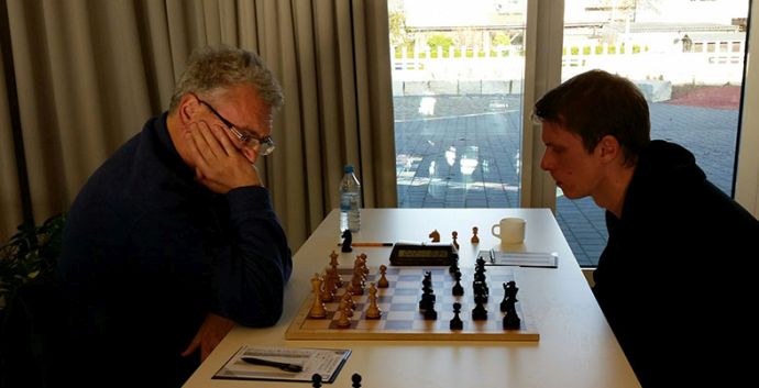 FM Bernd Schneider kommt in die Punkte: Remis am achten Brett.