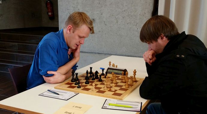 Brett 6: IM Christian Maier (SC Untergrombach) gegen Hendrik Tabatt (Caissa Schwarzenbach).