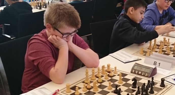 Simon Kling auf dem Weg in ein interessante, aber leider am Ende verlorene Partie. An Konzentration fehlte es ihm jedenfalls nicht.