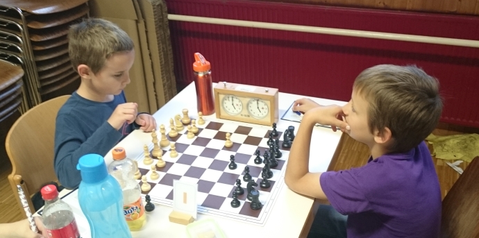 Luca Toth (links) mit eigentlich einem guten Turnier - gegen Tobias Kiefhaber gab er eine deutlich bessere Stellung leider remis.