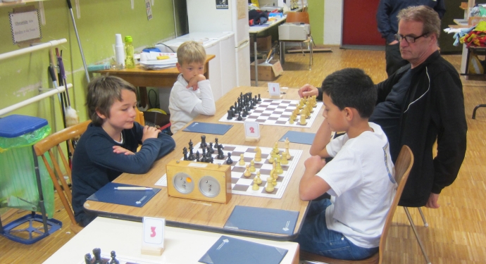 Mitfavorit auf den Titel war Marc Toth (1319), der mit drei souveränen Siegen startete und dann nur knapp unter Zeitnot der späteren Bezirksmeisterin Hannah Schulz (KSF, 1341) unterlag. Am Sonntag nutzte er seine Chance, ließ zwei Siege folgen und remisierte in der letzten Runde sicher gegen den bärenstarken, aus dem Nichts aufgetauchten Alexander Hoffmann (vereinslos). Damit lagen diese beiden Sieler punktgleich auf dem zweiten Rang, Marc hatte zwar die bessere Buchholz, das nützte aber nichts - wieder musste er ins Stechen, wie schon im Vorjahr, wo er unglücklich Vereinskollege Tim Burger unterlag. Diesemal blieb Marc eiskalt, im Schnellschach gewann er die erste Partie mit einem feinen Trick im Endspiel, wofür er sogar ein Sonderlob vom aufmerksamen Schiedsrichter Faruk Osmanic erhielt. Danach war der Widerstand seines Gegners gebrochen, die zweite Partie verlief einseitig. Aber wie stark spielt dieser Alexander Hoffmann, der auf seinem ersten Schachturnier gleich in die Spitze kommt! Marc ist damit als U12-Bezirksmeister der Jungs für die Badischen Meisterschaften vorqualifiziert.