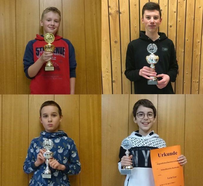 Sieger U14: Andre Hayen. Sieger U16: Pascal Nied. Sieger U12: Luca Toth. Sieger U10: Levin Uyar (im Uhrzeigersinn von links oben).