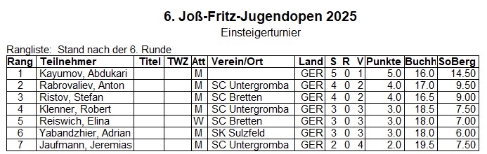 6. Joß-Fritz Jugendopen Untergrombach 2025 Einsteigerturnier