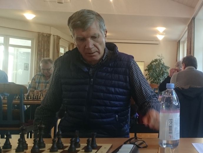 War mit schnellem Remis gegen IM Maier zufrieden: Kapitän IM Heinz Fuchs an Brett 3.