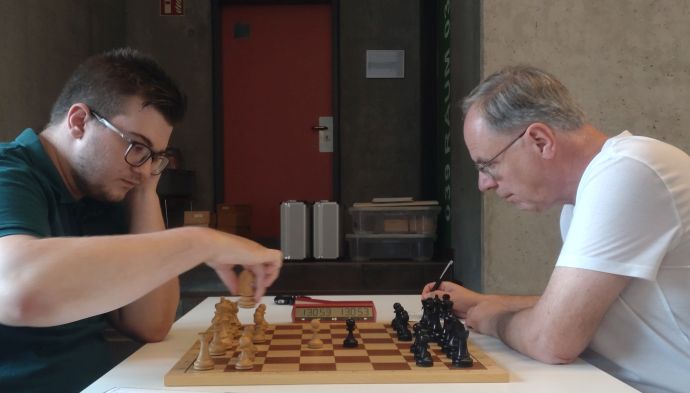Es war ein Auf und Ab, am Ende behielt Xiang-Tobias Peng mit Schwarz die Nerven und sammelte den Punkt ein.