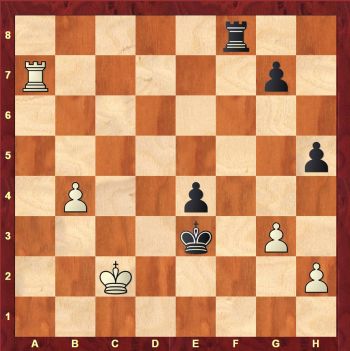 Diese Stellung ist objektiv Remis, aber Weiß muss die korrekte Verteidigung finden und hier hilft nur 58. Txg7 Kf3 59. Tg5 e3 60. Txh5 e2 61. Te5 e1D 62. Txe1 und das Endspiel ist Remis, weil sich der schwarze Turm für den Freibauern auf der b-Linie opfern muss, nachdem Schwarz den g- und h-Bauern abgeräumt hat. Weiß aber zog 58. b5?? und der schwarze Freibauer ist nicht mehr zu halten.