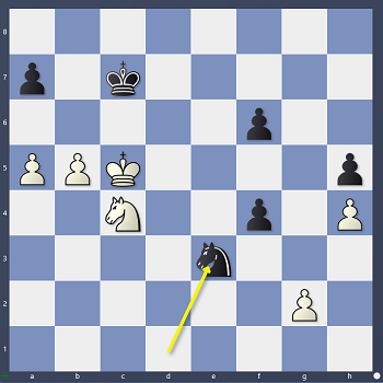 - b6+ ist der einzige Gewinnversuch für Weiß, aber geht das schnell genug? 38. b6+ axb6+ 39. axb6+ Kb8 40. Sa5 Sxg2 41. Kb5 f3 42. Ka6?? f2 43. Sc6+ Kc8 44. b7+ Kd7 45. b8D f1D+ und Schwarz gewinnt, weil er mit Schach einzieht und den Damentausch erzwingen kann. Ein besserer Versuch ist 42. b7, wobei Weiß nach 42. …Kc7 43. Ka6 f2 44. Ka7 f1D 45. b8D+ viele Schachs, aber keinen Gewinn hat, und sogar 42. …Ka7 43. Kc6 Sf4 44. Kc7 Sd5+ 45. Kc8 Sb6+ den Laden zusammenhält. Für Weiß ist also tatsächlich nicht mehr als ein Remis zu holen! In großer Zeitnot hatte Raupp ohnehin keine Chance all diese Varianten durchzurechnen und zog die Notbremse. Mit 38. Sd2, gefolgt von 39. Sf3 und 40. Kd4 gab er seine Hoffnungen am Damenflügel auf, um die gegnerischen Bauern einzufangen. Letztendlich konnte Schwarz mit erst einem, und dann sogar zwei Mehrbauern noch ein wenig auf Gewinn spielen, doch Weiß behielt die Lage unter Kontrolle – Remis nach satten sechs Stunden Spielzeit.