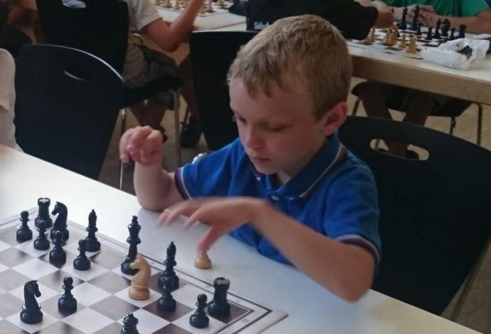 Auch Enno Mandel kehrte mit einem Pokal nach Hause. Dem Erstklässler genügten drei Siege für den zweiten Platz unter den Erstklässlern. Damit bestätigt Enno sein vorhandenes Talent. Wie alle Kinder in dem Alter muss er als nächstes lernen, langsamer zu spielen. Dann wird er noch viel besser werden.