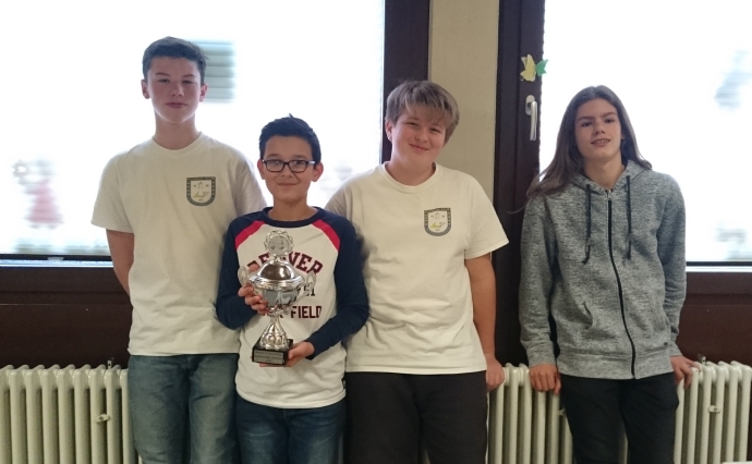 Die U14, hier im entscheidenden Kampf gegen den SC Brombach: Pascal Nied, Marc Toth, Simon Richter, Tim Burger.