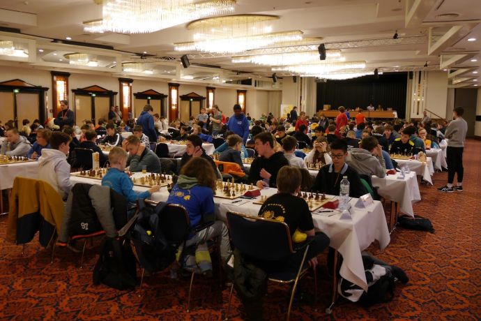 Zum Abschluss der U14-Bezirksmeisterschaften fand am 18.11.18 der Doppelspieltag in Untergrombach statt. In der Vormittagsrund schlug Ettlingen Bruchsal überzeugend mit 3½:½. Untergrombach musste gegen die KSF ran und hatte Glück, dass diese nur zu Dritt antraten und folglich Simon Richter am vierten Brett kampflos gewann. Tim Burger an Brett 3 hatte wenig Mühe mit seinem Gegner, der sich einen Turm abnehmen ließ - der Rest war Formsache. Bei Pascal Nied am Spitzenbrett sah es nicht gut aus, er hatte schnell zwei Bauern eingebüßt und wurde insgesamt gesehen klar überspielt. Marc Toth hatte gegen Alexander Hoffmann einen starken Auftritt, sammelte zwei Bauern ein und ging in ein klar gewonnenes Endspiel K+D gegen K+B+B. Aufgrund seines miserablen Zeitmanagements hatte Marc jedoch zu wenig auf der Uhr, um sich den Sieg zu holen. Das Endspiel endete mit einem Randbauern auf h7 gegen die Dame remis. Dennoch ein wichtiger Mannschaftssieg auf dem Weg zur Titelverteidigung.