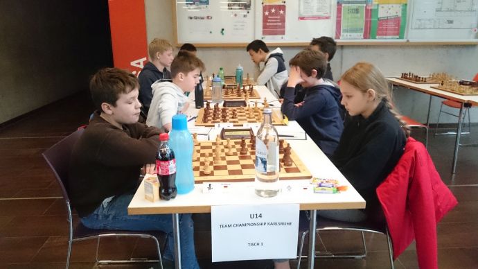Die U14-Mannschaftsmeisterschaft des Bezirks Karlsruhe wurde am 8.12. im Rahmen des Oberligakampfs Untergrombach - Buchen in Untergrombach ausgetragen. Teilnehmer waren der SC Untergrombach, Karlsruher SF und die SF Neureut. Der SK Ettlingen hat sehr kurzfristig die Teilnahme abgesagt. Untergrombach war bereits vorqualifiziert für die Badische Meisterschaft, wollte aber den Titel des Bezirksmeisters verteidigen. Erfreulich war, dass sowohl KSF als auch Neureut Top-Teams gestellt haben.