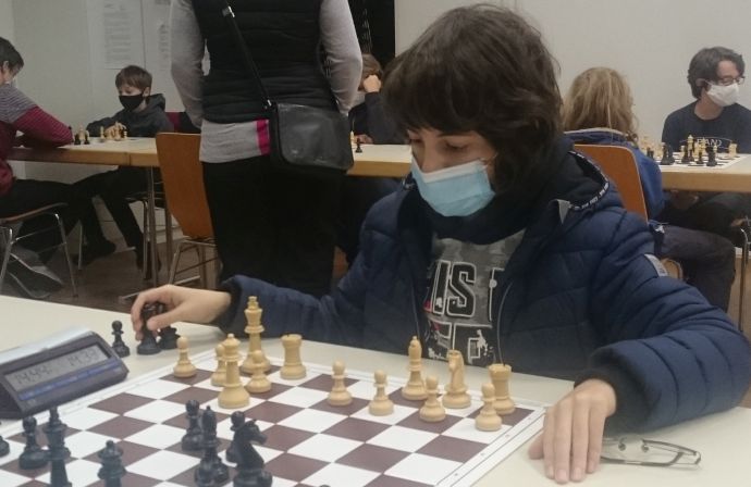 Luca Toth an Brett zwei nur mit Remis in Runde 1, danach ohne Chance gegen Darja Fischer. In den beiden letzten Runden punktete er dann souverän. 2 aus 4 sind zu wenig für ihn.