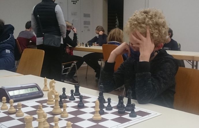 Wie schon vergangene Woche in der U16 bewies der Gastgeber, dass man seine Mannschaft keineswegs unterschätzen darf. Luca Toth verlor am zweiten Brett, diese Niederlage war entscheidend, Levin Uyar gegen Simon Skembris konnte schon froh sein, dass er sein verlorenes Enspiel noch zum Remis drehen konnte. Den halben Punkt bei Jonathan Wenzel mag man als Erfolg verbuchen, leider wurde die Partie "Bullet-Style" heruntergeblitzt, so dass nach gefühlt vierzig Zügen beide Spieler mehrere Minuten Zeit mehr als vor dem ersten Zug hatten. Beide hatten auch etliche teilweise einzügige Gewinnvarianten ausgelassen. An Brett 1 kam Andre Hayen nicht über ein Remis hinaus. Hier spielte sicherlich eine Rolle, dass Andre Hayen erst mit der Abfahrt aus Karlsruhe erfuhr, dass er das Spitzenbrett übernehmen muss.