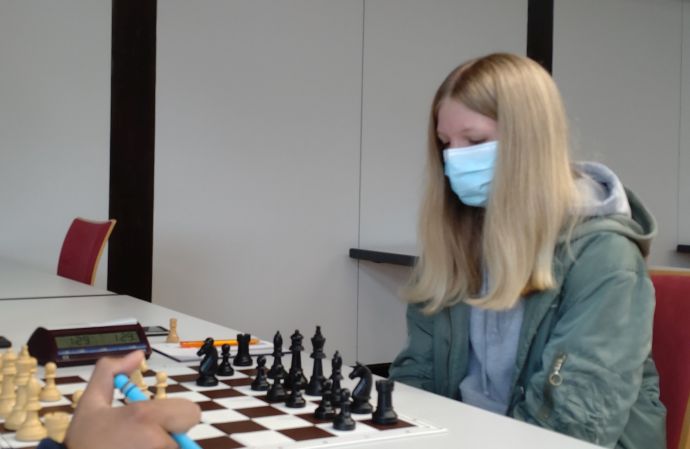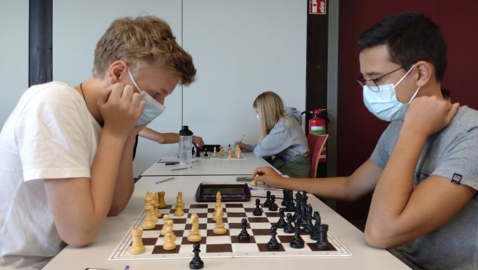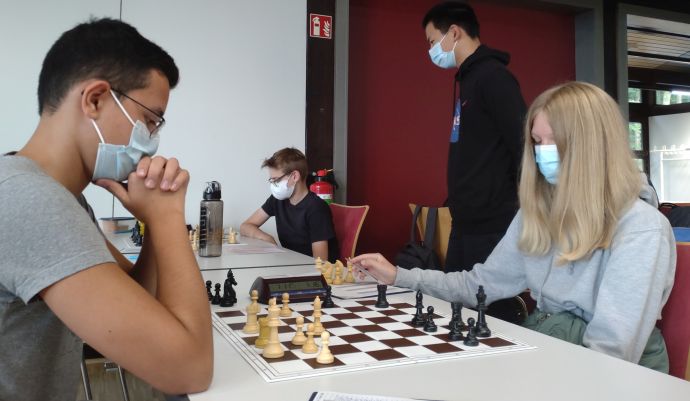 Luca Toth in der letzten Runde gegen die Turniersiegerin Mara Haug (KSF). Im Endspiel konnte er die Partie zu seinen Gunsten entscheiden.