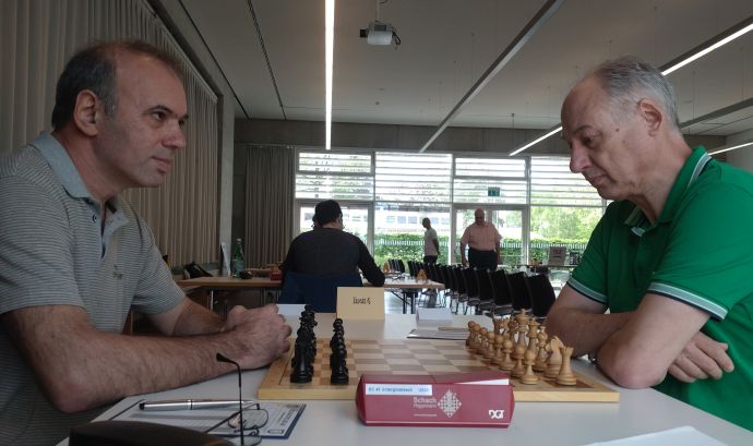 Auch Untergrombachs Mannschaftsführer IM Heinz Fuchs bekam es mit einem Gegner zu tun, der Beton anrührte. Aufgrund der Untergrombacher Führung tat der frühe Friedensschluss nach einundzwanzig unspektakulären Zügen auch nicht weiter weh.