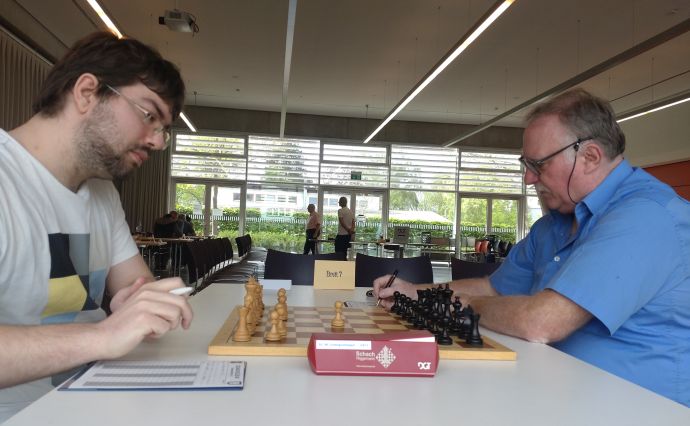 Über eine Abtauschorgie zum Remis: FM Bernd Schneider holte einen halben Punkt mit Schwarz.