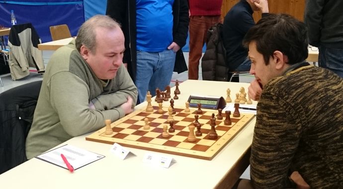 IM Nekrasov (Weiß) war vermutlich müde, die Preisgeldränge außer Reichweite, so gab er nach 20 Zügen die Partie gegen Jochen Wilhelm remis.