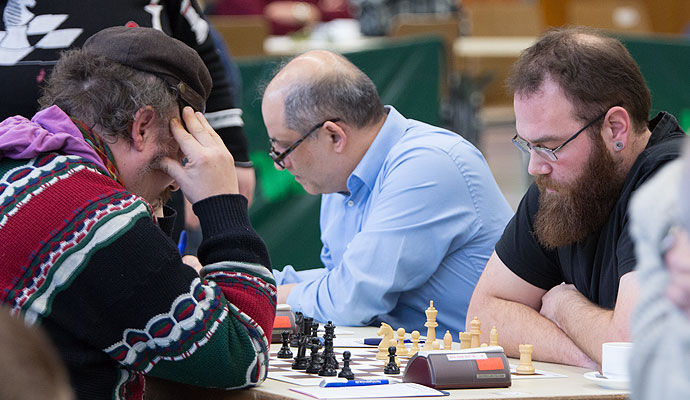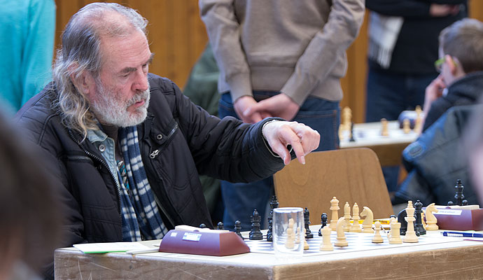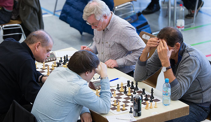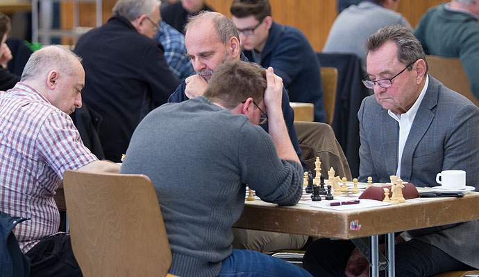 Siegfried Stegh (links) kommt nach zwei Runden auf zwei Punkte - ebenso wie sieben weitere Spieler.