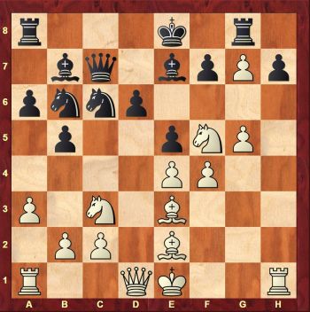 Nach nur 23 Zügen besorgte GM Davor Rogic die Führung für den SCU, die zu diesem frühen Zeitpunkt niemanden mehr überraschte. In der Paulsen-Variante der Sizilianischen Verteidigung hatte sein Gegenüber im dreizehnten Zug daneben gegriffen und setzte seinen Springer statt nach c5 nach b6, was dem kroatischen Großmeister auf Untergrombacher Seite erlaubte, seinen Bauernsturm am Königsflügel zu vollenden. Nach gerade einmal 16 Zügen war folgende Stellung auf dem Brett, die auch weniger starke Schachspieler schnell unter "kaputt" klassifizieren: