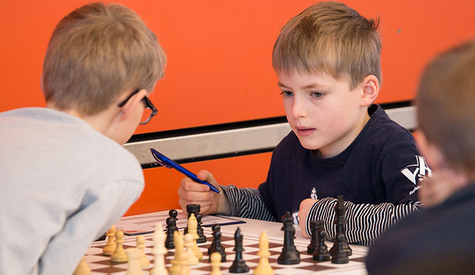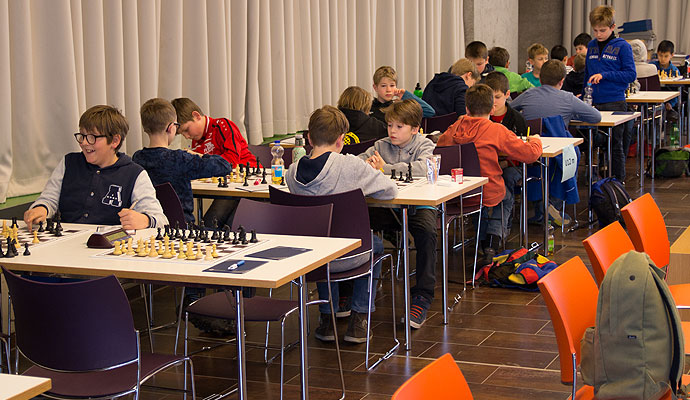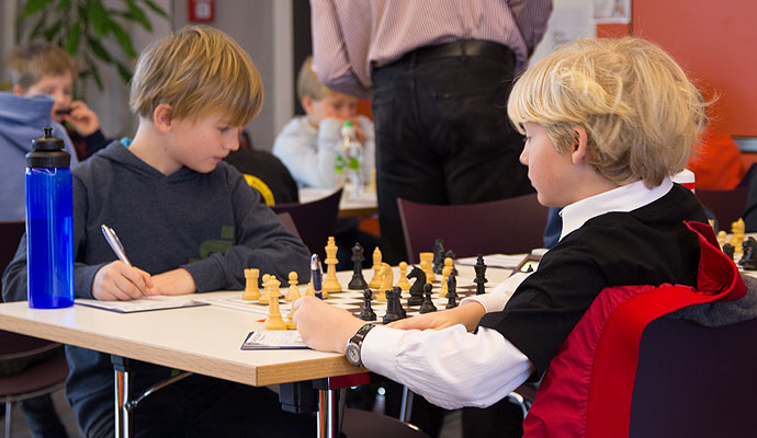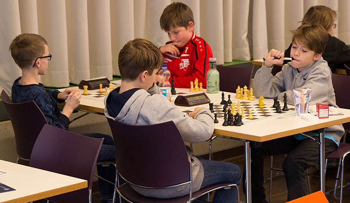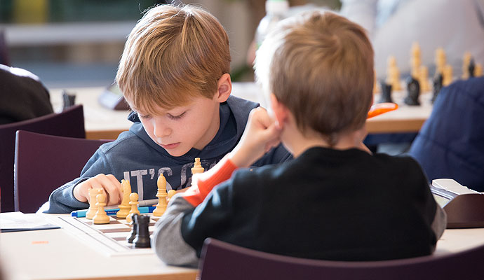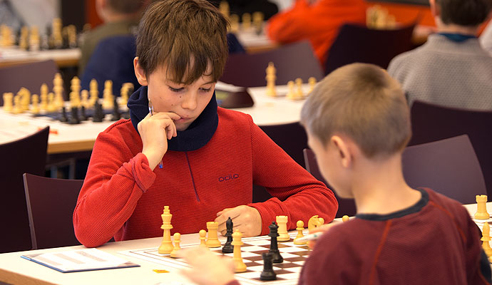 In der U10 gehört Moritz Täubler (rechts) zu den Favoriten und hat nach dem ersten Tag auch 2 aus 2.