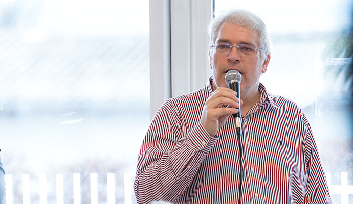 Der Untergrombacher Ortsvorsteher Karl Mangei bei der Eröffnungsrede