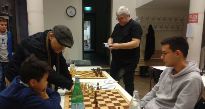 GM Philipp Schlosser und IM Rolf Schlindwein waren ebenfalls fasziniert von dem Turmendspiel in der Partie Toth - Yin.