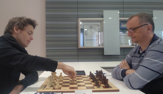 Im französischen Duell am Spitzenbrett wurden die Punkte geteilt: IM Borya Ider für den SC Untergrombach spielte mit Weiß.