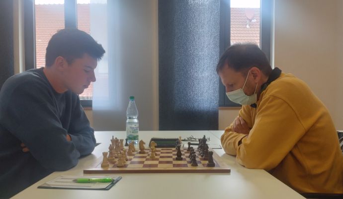Am Spitzenbrett traf IM Borya Ider auf einen alten Bekannten, FM Thimotee Heinz, der in der Saison 16/17 in der zweiten Schachbundesliga für den SCU antrat. In Untergrombach hat man nicht so gute Erinnerungen an den Spieler, der nach Ablauf des Transferfensters damals seine Zusage für die Saison 17/18 überraschend wieder zurückzog. IM Ider hatte ihn im Vorfeld der Begegnung als "sehr soliden Spieler" beschrieben, gegen den ein Punktgewinn kein Selbstläufer werden würde - er sollte recht behalten. In einer Variante des angenommenen Damengambits zementierte Ider ein mächtiges Bauernzentrum ein, dem Schwarz dynamisches Spiel entgegensetzte. Nach einer Abtauschorgie mit einigen taktischen Finessen war ein Endspiel mit Dame und Läufer entstanden, in dem keine der beiden Parteien mehr Aussicht auf irgendeinen Vorteil hatte und folgerichtig teilten sich die beiden französischen Meisterspieler die Punkte.