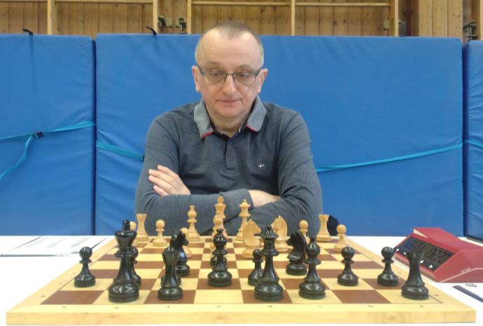 GM Davor Rogic (Untergrombach) begnügte sich mit einem schnellen Remis gegen IM Vadim Cernov (Ladenburg).