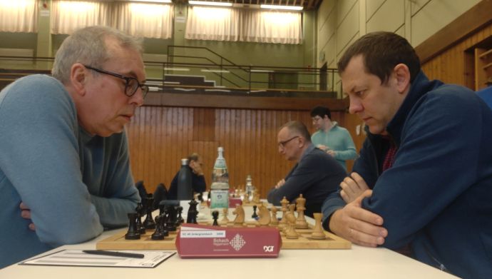 An Brett 3 spielt Volodymyr Vyval (Ettlingen) mit Weiß gegen Harald Klingenberg (Bensheim).