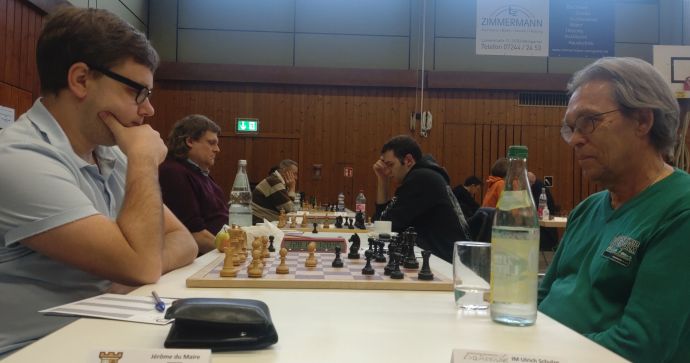 Jérôme du Maire (Trier) und IM Ulrich Schulze (Pforzheim) waren als Erste fertig und reichten ein Remis ein.