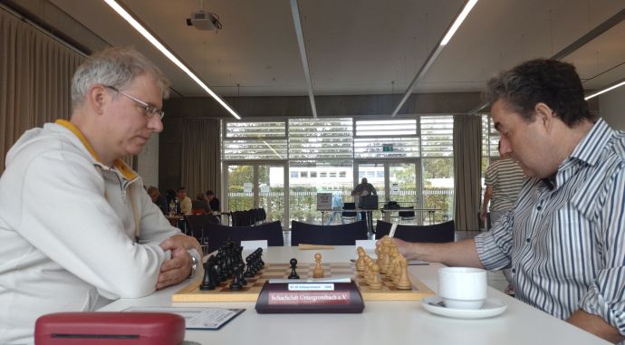 Lieferten sich einen langen Kampf: FM Bücker (Weiß) gegen Untergrombachs siegreichen FM Dr. Podat.