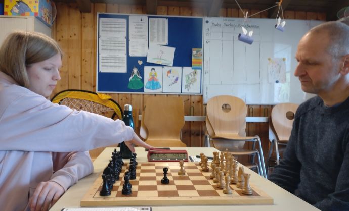Hannah Kling musste mit Schwarz für den halben Punkt umsichtig spielen.